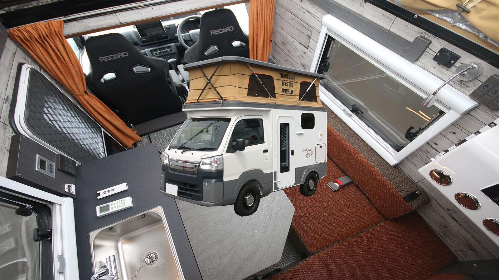 報告衝撃の軽キャンピングカー「ファニーズハウス」を紹介。ハイゼットトラックベースでこのルックス!