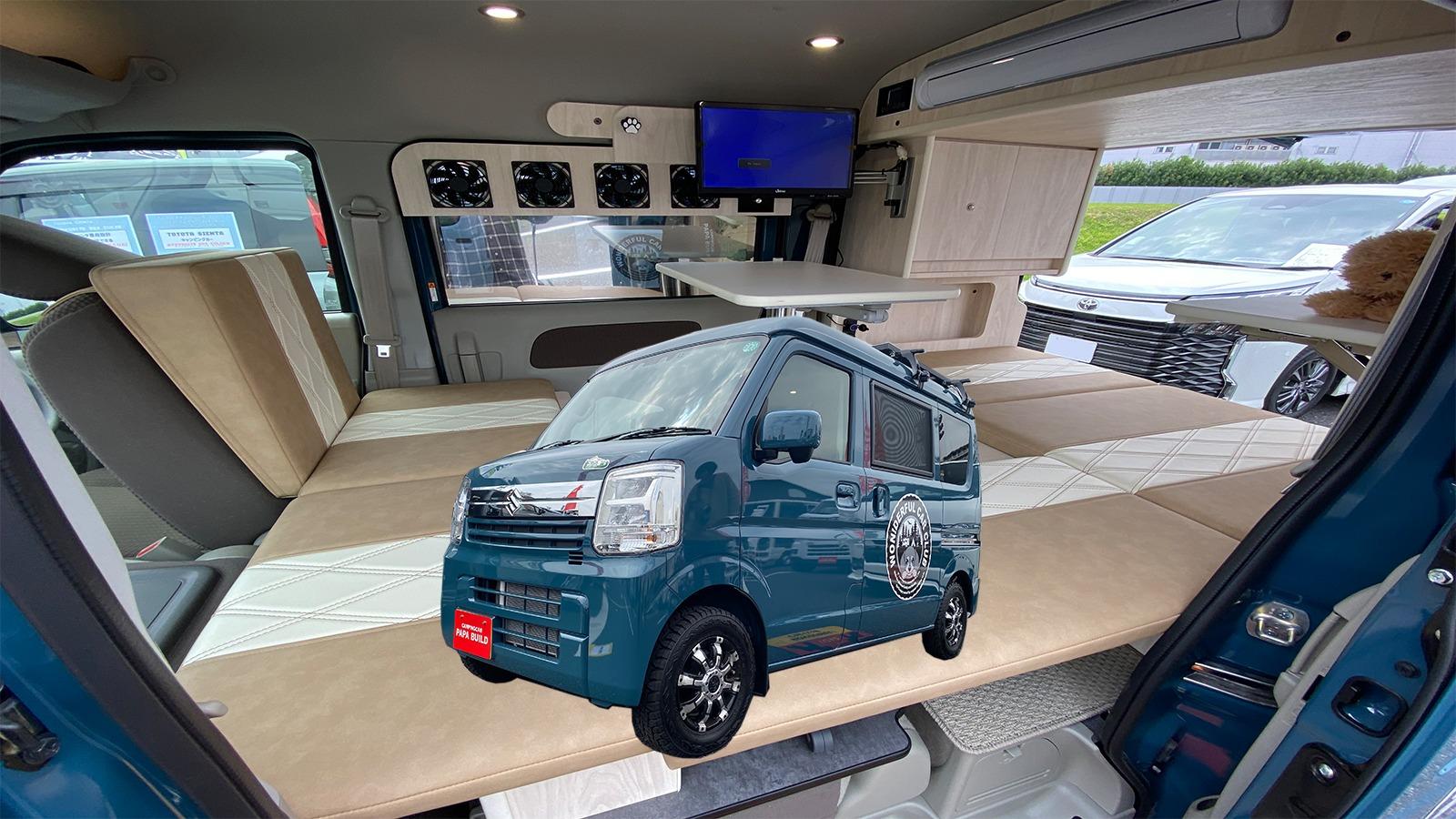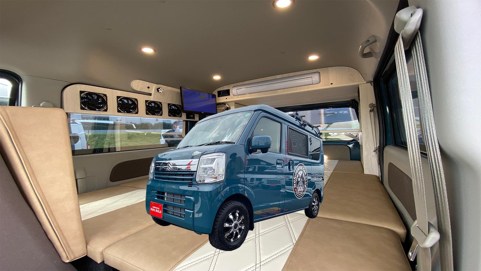 報告【284.7万円~】軽キャンピングカー「イカヅチ」はスズキ・エブリイベースの強力電装軽キャンパー!