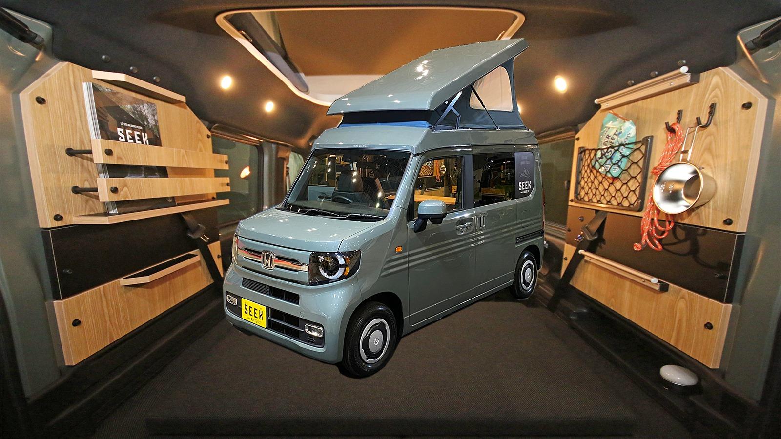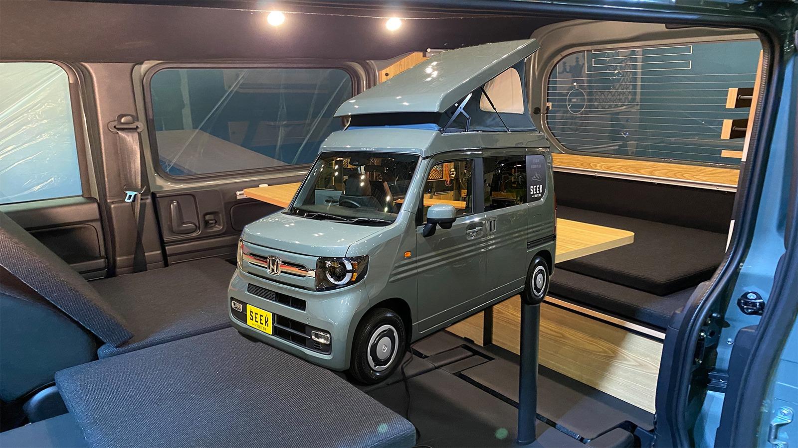 報告ホンダ・N-VANベースの本格軽キャンピングカー「シーク・ポップアップルーフ」はウッディな雰囲気!