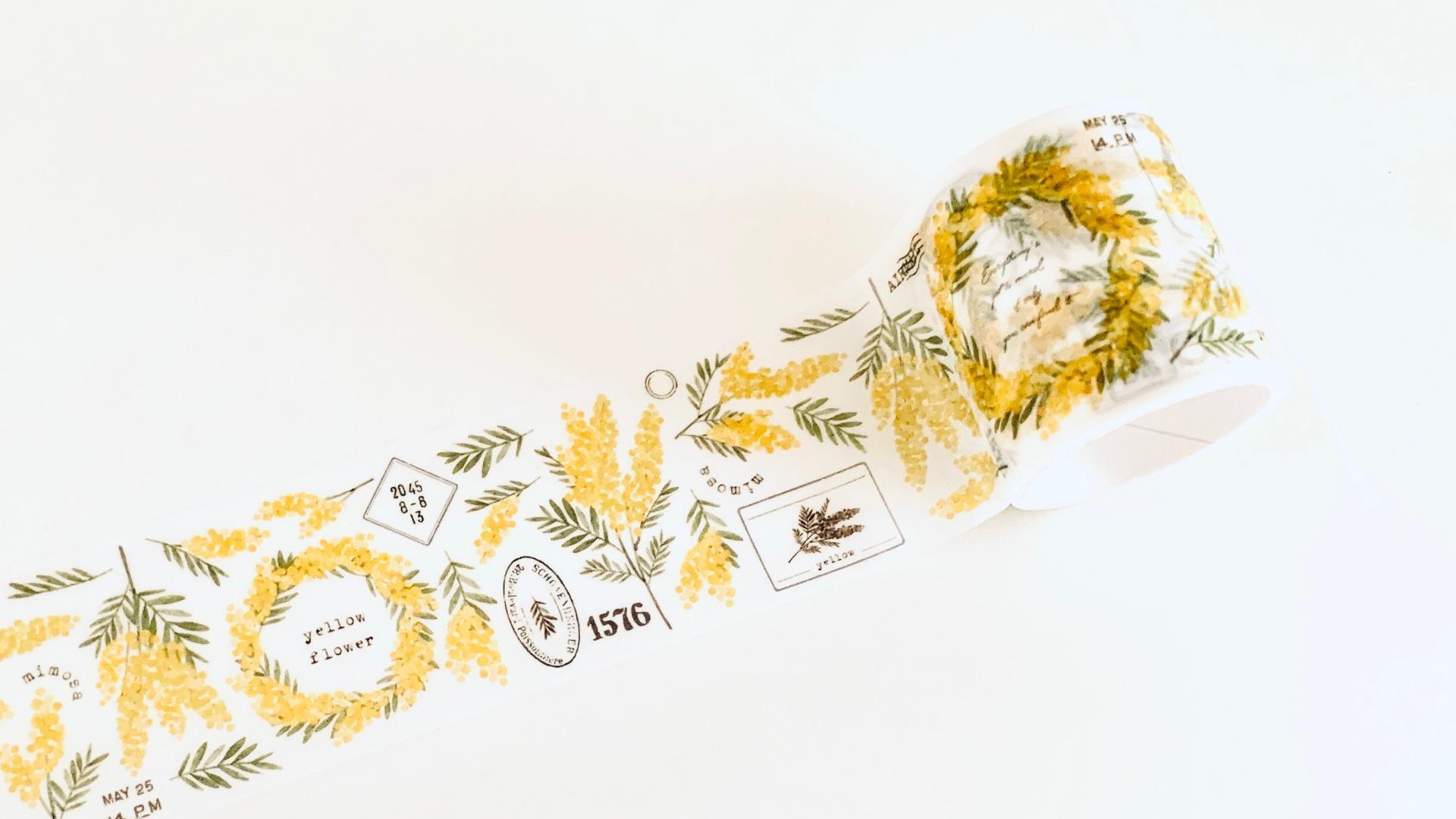 報告【セリア】可憐な「ミモザ」のマスキングテープが、100均からでた!早速ほぼ日手帳に使ってみたレビュー