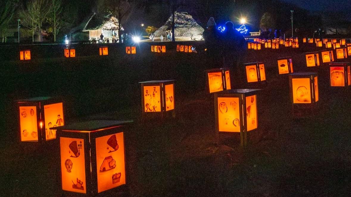 報告【塩尻市】1/25(土)"遺跡を彩る光の旅"平出遺跡の復元家屋をライトアップ!幻想的な灯篭で光の回廊